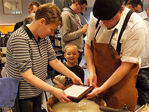 Kom langs en schep je eigen vel papier. Als je je vel papier geschept hebt kun je er een kreet of je naam op drukken. Je zet het zelf met losse loden letters en bedrukt je vel op een eeuwenoude drukpers. Het resultaat is een uniek vel papier met een persoonlijk tintje!